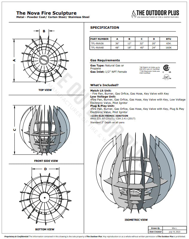 More than just a visual marvel, the Nova Fire Sculpture provides warmth and ambiance. Built to endure the elements, this timeless sculpture is a testament to both beauty and durability. Experience the perfect fusion of comfort, style, and resilience with The Outdoor Plus' Nova Fire Sculpture.